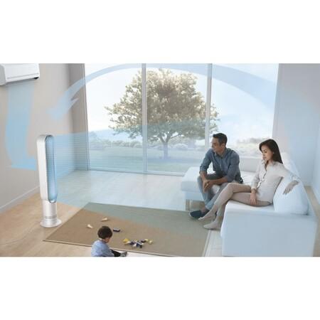 Dyson AM07Sloupový ventilátor Dyson AM07 je revoluční bezlopatkové zařízení s elegantním designem hodícím se do každé moderní domácnosti. O pohon vzduchu se stará technologie Air Multiplier, která jej pohání a urychluje prostřednictvím prstencového otvoru, proud je příjemný, rovnoměrný a bez poryvů. Nehrozí tak žádné nebezpečí úrazu vás samotných nebo především vašich ratolestí. Jistě oceníte také jeho snadnou údržbu.Plynulá oscilace vzduchu