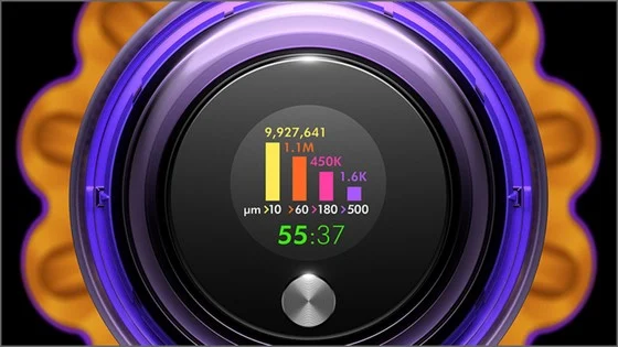 Tento displej zobrazuje množství prachových částic, které byly vysáto. Díky tomu můžete být si jisti, že váš domov je opravdu čistý a bez alergenů.