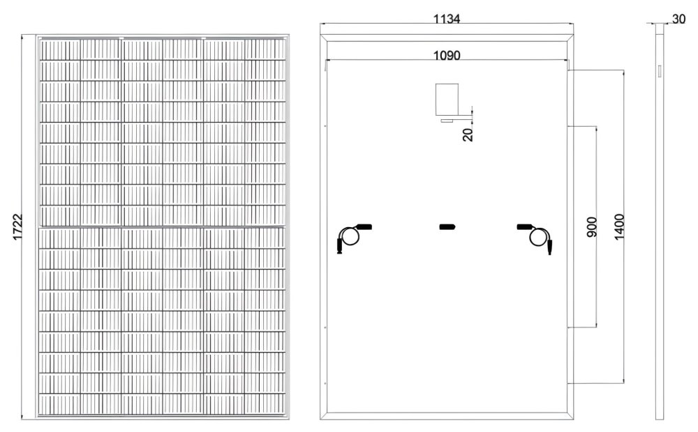 Tyto panely mají 108 článků v celočerném hliníkovém pevném rámu. Je vybaven speciálním mechanicky odolným tvrzeným sklem s vysokou schopností průchodu světelného záření.