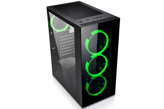 Herní ATX midi tower s instalovanými 4x RGB rainbow 120 mm ventilátory, které se ovládájí pomocí LED tlačítka na horní straně ovládacího panelu. Přední a obě boční strany jsou z tvrzeného skla . Skříň je určená pro základní desky podporující platformu Intel i AMD. Mimo formátu ATX je kompatibilní i s formátem Micro ATXa Mini ITX. Napájecí zdroj se umísťuje do dolní části skříně. Spodní mřížka je osazena vysouvacím prachovým filtrem, horní prachový filter je uchycený magnety a je odnímatelný. Ventilátory jsou 4pin s MOLEX napájením a připojují se vzájemně na sebe bez nutnosti jakéhokoliv řadiče. Ovládání ventilátorů je možné pouze pomocí LED tlačítka na kontrolním panelu skříně.