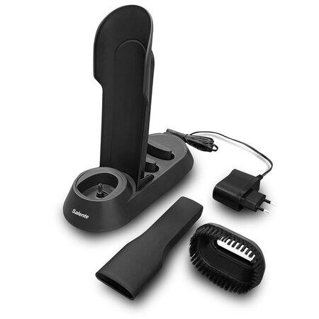 S bezdrátovým ručním vysavačem Salente SuperVac jde uklízení jako po másle. Stará se o to extra odlehčená konstrukce, díky níž lux váží jen 700 gramů. Dalším užitečným prvkem je gumová zpětná klapka, která zabraňuje nechtěnému vytřepání posbíraného prachu. A určitě oceníte i vyměnitelné hubice, jejichž zásluhou můžete dokonale uklízet různé povrchy – součástí balení je kartáčová hubice na vysávání čalounění či měkkých povrchů a štěrbinová hubice na nepřístupná či uzounká místa.