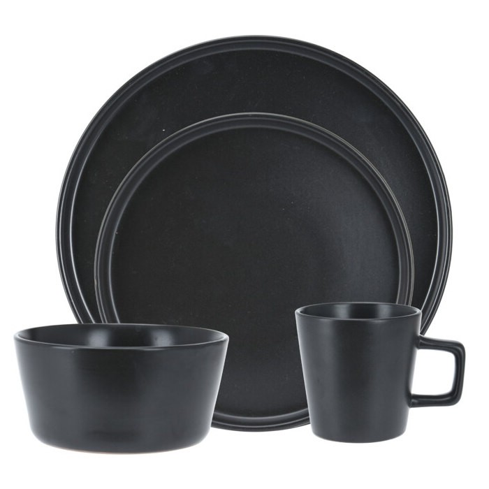 EXCELLENT Jídelní sada talířů kamenina 16 ks matná černá KO-Q90000290
