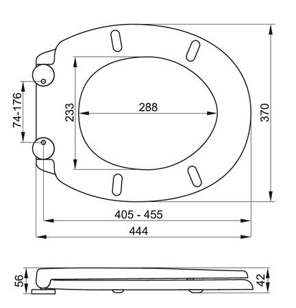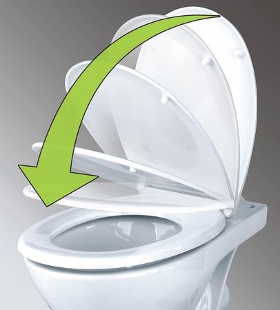 WC prkénko se zpomalovacím sklápěcím mechanizmem, zajišťuje tiché a volné dosednutí prkénka k míse.