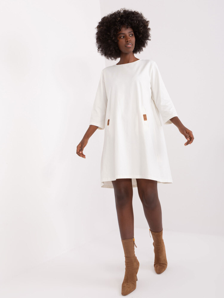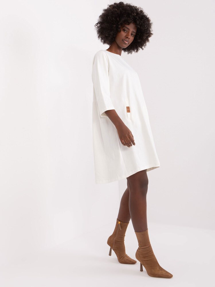 Fashionhunters Ecru volné bavlněné šaty Dalenne Velikost: L/XL