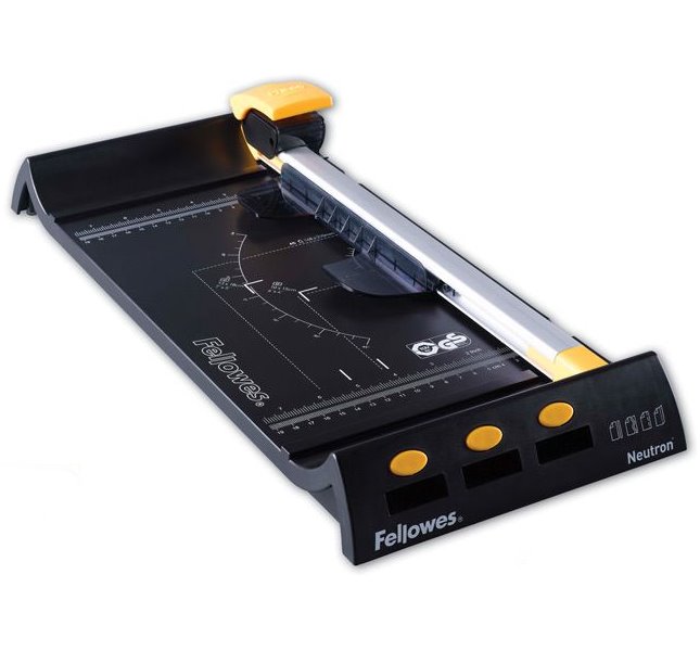Vícefunkční kolečková řezačka Neutron A4 značky Fellowes je určená pro menší příležitosné zatížení ať už v domácnosti nebo v kanceláři.