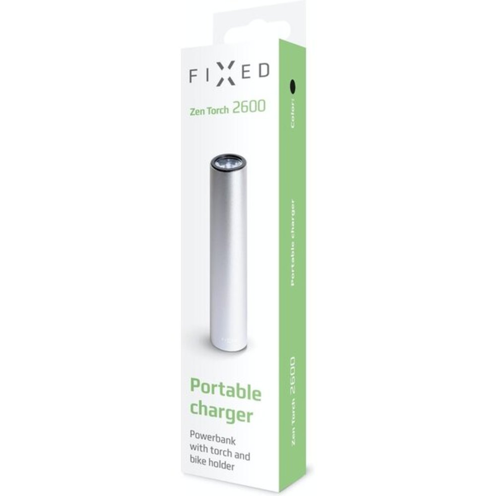 FIXED Torch powerbanka se svítilnou a držákem na řídítka 2600 mAh stříbrná