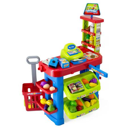 Dětský obchod je prodejní stánek se zeleninou, ovocem a sladkostmi. Součástí je také pokladna s penězi, čtečka čárového kódu (s reálným zvukem) a košík na kolečkách pro zákazníka. Vyrobeno z plastu. Vhodné pro děti od 3 let.
