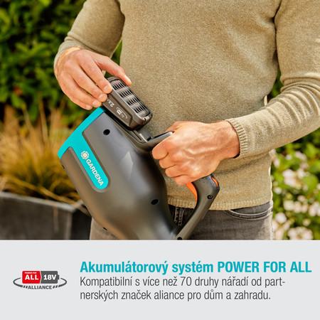 Akumulátorový foukač PowerJet 18V P4A je dodáván bez akumulátoru a nabíječky. Je kompatibilní se všemi 18V akumulátory Aliance POWER FOR ALL, jedné z největších aliancí předních výrobců akumulátorů různých značek. Tyto akumulátory lze použít pro řadu zařízení pro péči o dům a zahradu. Takže ušetříte peníze a zůstanete flexibilní! Nebo upřednostňujete koupi produktu se systémovým akumulátorem? To není problém - pak je pro vás sada k okamžitému použití ta pravá. Vášeň poháněná značkou GARDENA - zahradní akumulátorové vybavení, které vám poskytuje svobodu při práci.