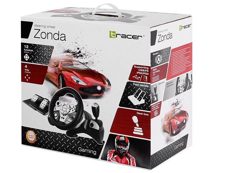 Volant Tracer Zonda patří k technicky pokročilým zařízením určeným pro použití v automobilových, závodních a simulačních hrách. Možnost uchycení/přišroubování na stůl navíc zvyšuje reálnost zážitků během hry. Technologie Vibration Feedback, použití speciálního protiskluzového materiálu, ergonomické rukojeti a řešení tvaru knoflíků zajišťují vysoký komfort při používání a umožňují vám plně si vychutnat vzrušující zábavu. Volant má 12 funkčních tlačítek, mini-joystick a čtyřcestný přepínač. Přiložené pedály zajišťují reálnost zážitků každé hry a v případě PS3 můžete také využít spoustu zábavy pomocí zpátečky.
