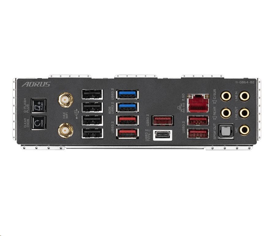 2 x USB 3.2 Gen 2 Type-A ports (red) on the back panel