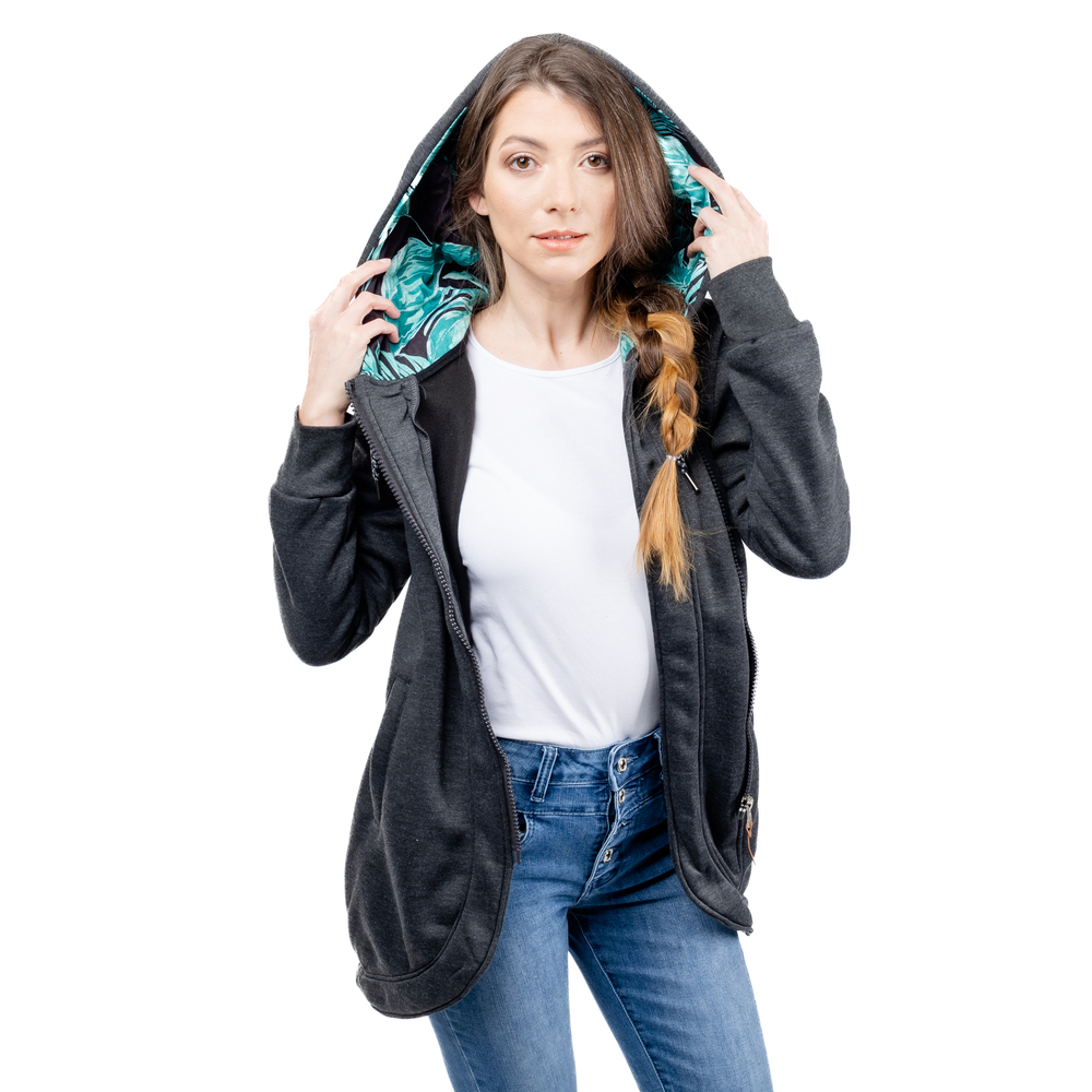 Ale tohle není jen mikina - s prodlouženým střihem můžeš ji použít jako lehký kabátek, takže ji můžeš nosit všude, kam je libo. Takže zahradnice nebo fashionistka - tahle mikina je jako květinová zahrada, kterou si můžeš nosit na sobě a každý den se těšit z její krásy.