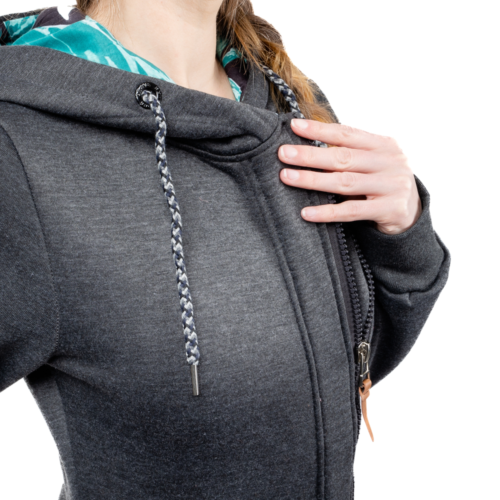 Tahle mikina je jako květinová zahrada, kterou si můžeš vzít s sebou kamkoliv! S prodlouženým střihem a asymetrickým zapínáním, ti dá pocit luxusu a zároveň pohodlí. Velká kapuce s květinovým vzorem je jako květinový věnec, který ti dodá ten správný výraz nevinnosti a navíc ti poskytne potřebné krytí před nepříznivým počasím. Taky má dvě boční kapsy do kterých si můžeš schovat všechny věci, které potřebuješ.