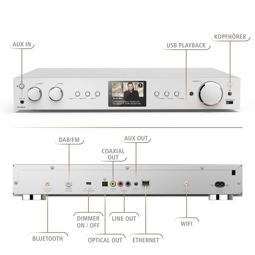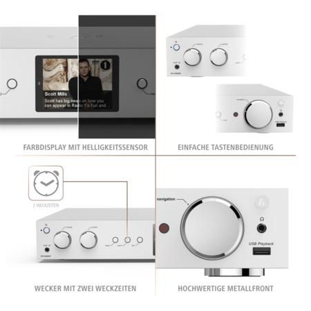 - váš domácí HiFi systém v nové dimenzi: digitální rozhlas DAB/DAB+, FM rádio, internetové rádio, Bluetooth a WiFi streaming - HiFi tuner pro příjem FM/ DAB/ DAB+ a internetových stanic - barevný informační LCD displej 2,8" (320x240 pixelů) - kvalitní kovová konstrukce s propracovaným čelním panelem ...