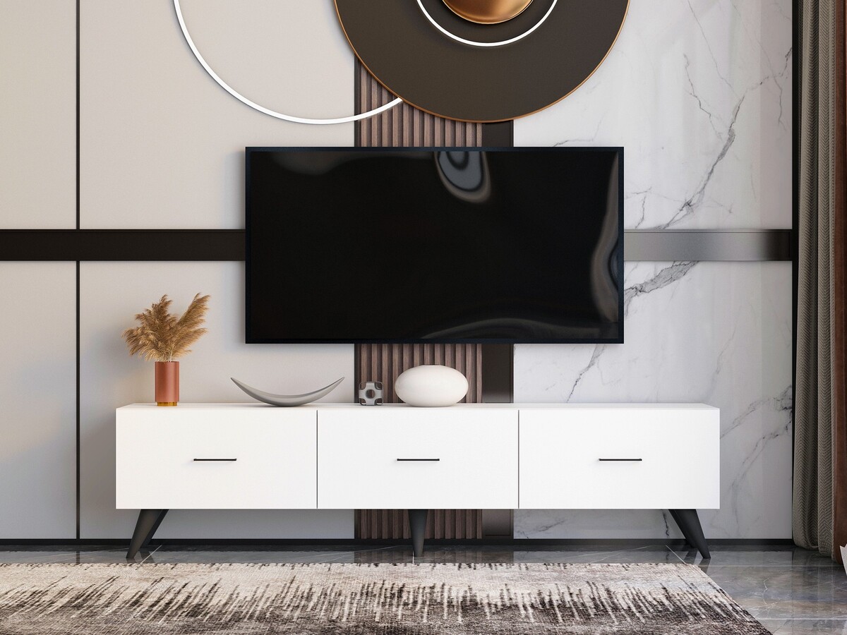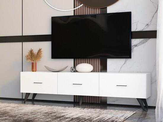 Náš televizní stojan vyzařuje nejen styl, ale nabízí také praktičnost. Plastové černé nohy poskytují stabilitu a oporu a zajišťují, že televizor bude bezpečně držet na svém místě. S šířkou 180 cm, výškou 31. 8 cm a hloubkou 45 cm nabízí tento televizní stojan dostatek prostoru pro vaši televizi a další multimediální zařízení. Jeho bílá barva dodá vašemu obývacímu pokoji nádech jasu a vytvoří vizuálně přitažlivý ústřední bod.