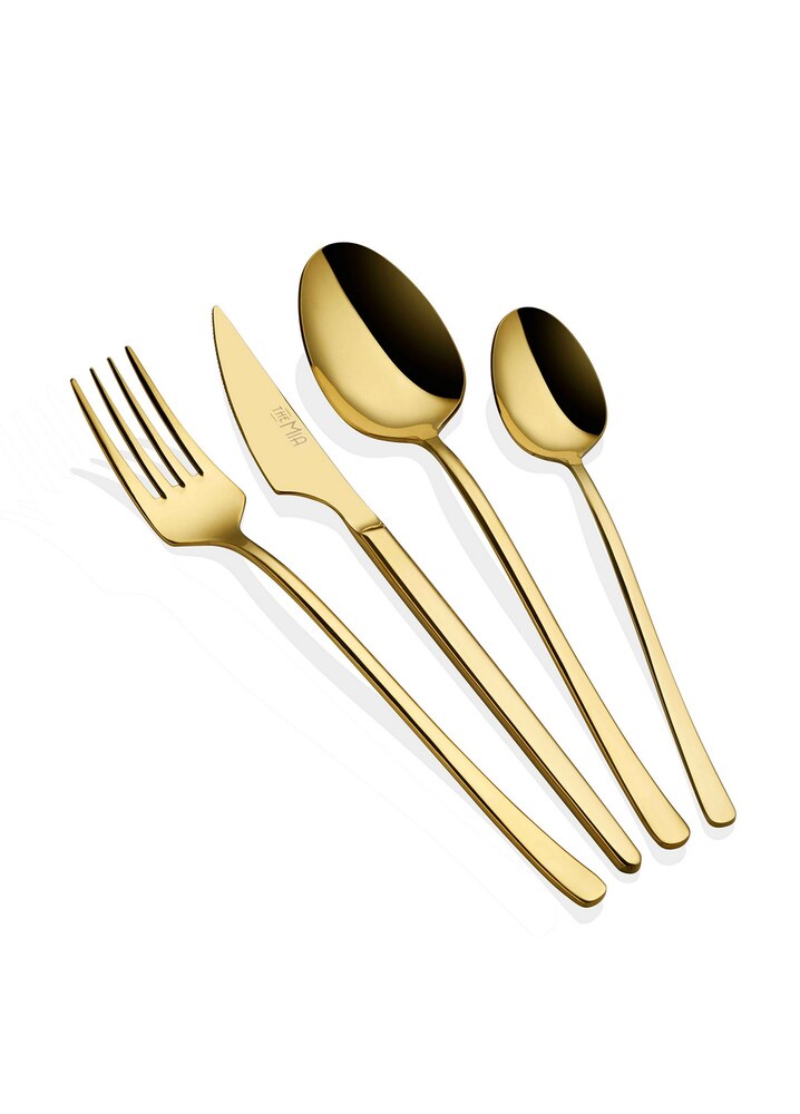Tato sada příborů v úžasné zlaté barvě dodá každému jídelnímu stolu nádech bohatství. Její elegantní a moderní design bez problémů doplní jakékoli prostírání, takže se skvěle hodí jak pro slavnostní příležitosti, tak pro každodenní použití.