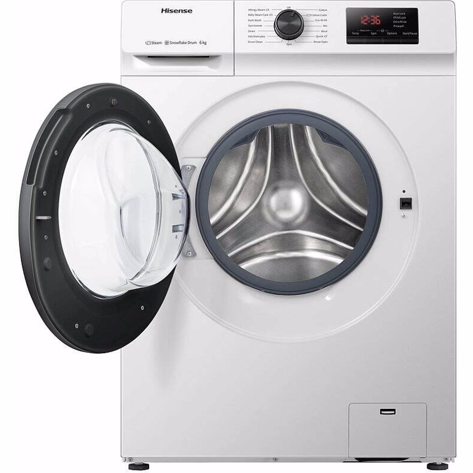 Pračka s předním plněním Hisense WFVB6010EM disponuje specifickým otočným bubnem ve tvaru sněhové vločky, který se o vaše prádlo dokonale postará a odstraní i velmi těžko dostupné nečistoty. Bonusem je funkce Drum Clean na snadné čištění.