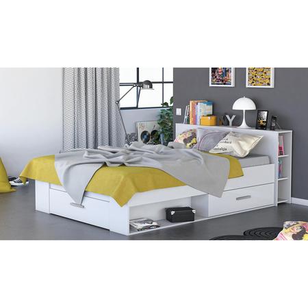 barevné provedení bílá čelo postele slouží jako knihovna, 3 velké úložné zásuvky, výška sedu cca 51 cm cena bez roštu a matrace, doporučený rozměr matrace 160 × 200 × 16 cm nebo 2 kusy 80 × 200 × 16 cm k posteli je nutné použít samonosný rošt v rámu 160 × 200 cm (7866) k této posteli NELZE použít ...