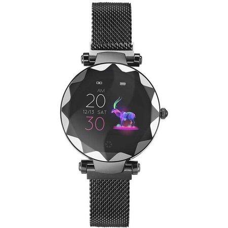 Elegantní dámské chytré hodinky s magnetickým řemínkem jsou díky svému designu vhodné nejen pro aktivní sportovce, ale také jako atraktivní doplněk pro běžné nošení. Hodinky nabízí 1,04" dotykový displej s rozlišením 240 x 198 bodů a jejich základem je procesor Nordic NRF52832. Díky podpoře bezdrátového připojení Bluetooth vám po spárování s vaším chytrým telefonem připomenou zmeškaný hovor, SMS, notifikace z aplikací, naplánované pracovní schůzky apod. Mezi jejich sportovní funkce poté patří měření srdečního tepu a krevního tlaku či sběr informací o vašich sportovních aktivitách, jako je chůze, běh, cyklistika, horolezectví a další. To vše můžete pohodlně a přehledně sledovat v aplikaci Wearhealth, která je dostupná kompletně v českém jazyce. Pro snadné ovládání jsou i samotné hodinky v české lokalizaci. S kapacitou baterie 140 mAh vám zaručí výdrž v pohotovostním režimu až 10 dní, nebo při běžném používání až 5 dní.