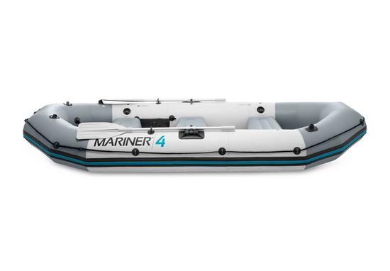 Nafukovací člun Intex Mariner 4 Set má navíc tři nafukovací sedáky, dvě vesla, dvě madla, zesílený spodní lodní trup a opravnou sadu. Člun Mariner 4 Set má ventil pro rychlé nafouknutí a vyfouknutí. Nafukovací podlaha pro extra komfort.