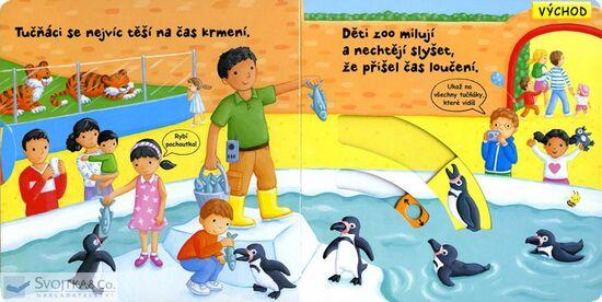 Leporelo je určeno pro děti od jednoho roku. Má pevné stránky s posuvnými a otočnými prvky. Zjisti, jak to žije v zoo, a procvič si svou jemnou motoriku!