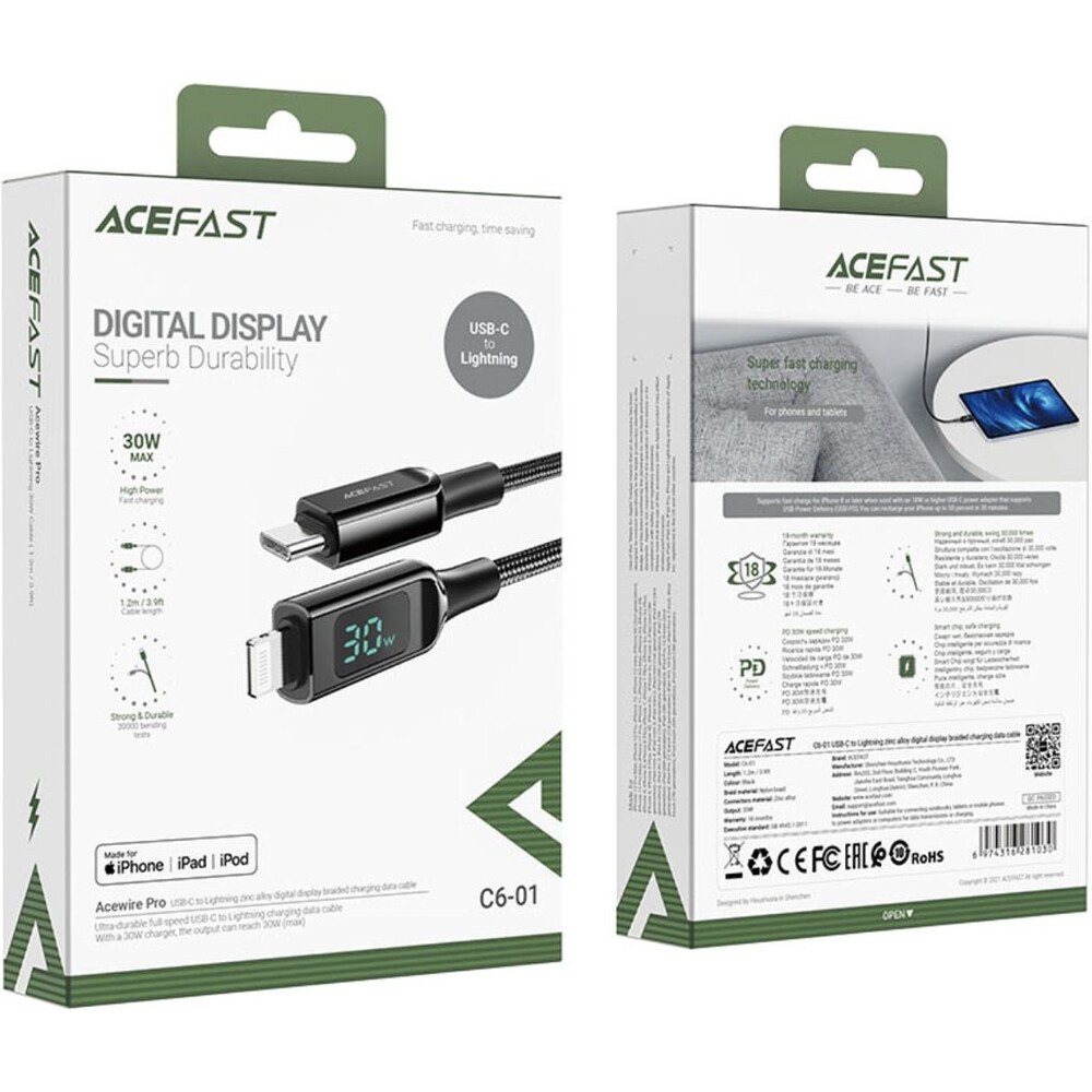 Nyní můžete svůj iPhone nabíjet rychle a bezpečně! Kabel Acefast C6-01 nabízí nabíjení s maximálním výkonem 30 W a podporuje protokol PD. Umožňuje také přenos dat rychlostí až 480 Mb/s. Je oficiálně certifikován MFI, takže s ním můžete volně nabíjet všechna svá zařízení Apple. Vyniká mimořádnou odolností a pokročilé bezpečnostní prvky zajišťují vysokou úroveň bezpečnosti.