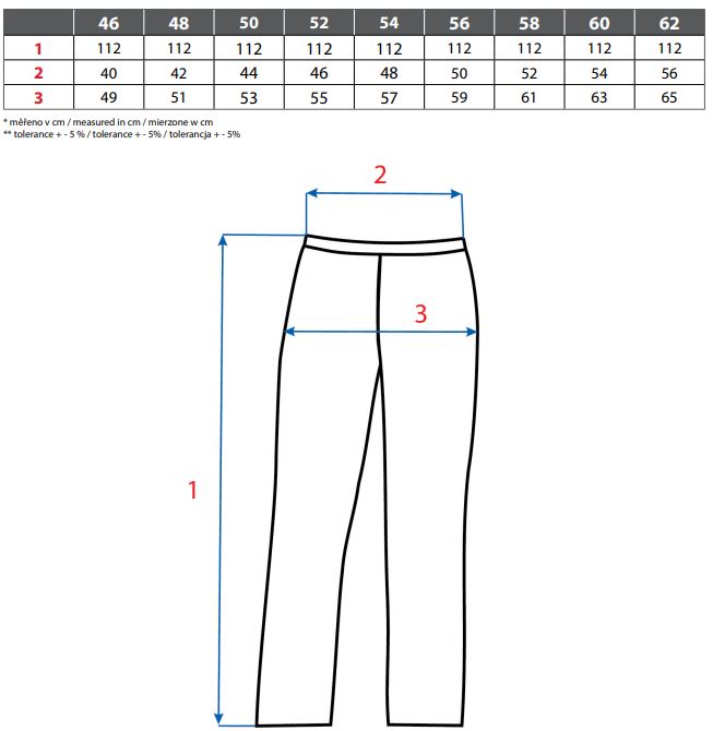 Pánské džíny, pas s poutky na opasek a plastovým přívěskem, vnitřní protiskluzová gumová páska v pase, 2 přední kapsy, 2 zadní kapsy z materiálu CORDURA, boční multifunkční kapsy, na pravé kapse poutko pro kladivo, kolena zesílena materiálem CORDURA s možností vložení kolenních výztuh.