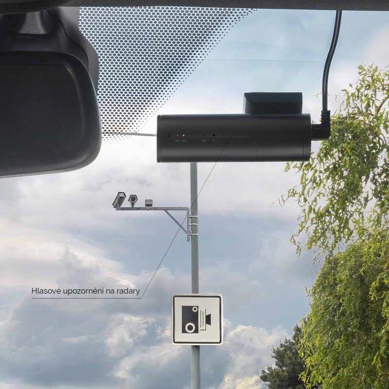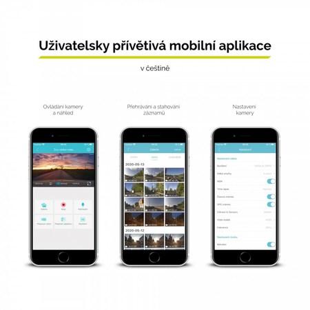 - Funkce: Rychlá 5 GHz WiFi, GPS s detekcí radarů, WDR, Timelapse, G-senzor, záznam do smyčky, ochrana souborů, automatické spuštění, nastavení kompresního formátu (H.264, H.265), možnost zobrazení údajů ve videu (jméno řidiče, GPS souřadnice, rychlost, datum a čas)