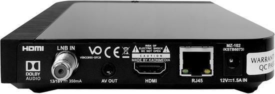 Hybridní satelitní přijímač Kaon s integrovanou kartou Viaccess Orca a aplikací Skylink Live TV nabízí obrovské množství obsahu a zábavy. Přístroj disponuje oblíbenou funkcí Skylink FastScan s automatickým rozpoznáním portu DiSEqC. Samozřejmostí je ovládací protokol DiSEqC 1.2 a USALS. Uživatelé navíc ocení možnost programovatelného PVR nahrávání na USB médium a funkci Timeshift. Připojení k internetu je možné pomocí LAN konektoru a také integrované Wi-Fi s volitelným pásmem 2.4 / 5 GHz.