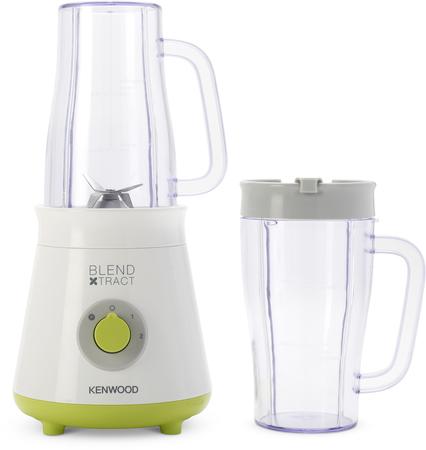 Kompaktní mixér Blend-Xtract; 2 nádoby o objemu 0,5 l; 4 nerezové nože; víčka na nádoby s otvorem na pití; 2 rychlosti + puls pro precizní kontrolu rychlosti; gumové nožičky pro vysokou stabilitu; 300 W; bílá barva se zelenými detaily