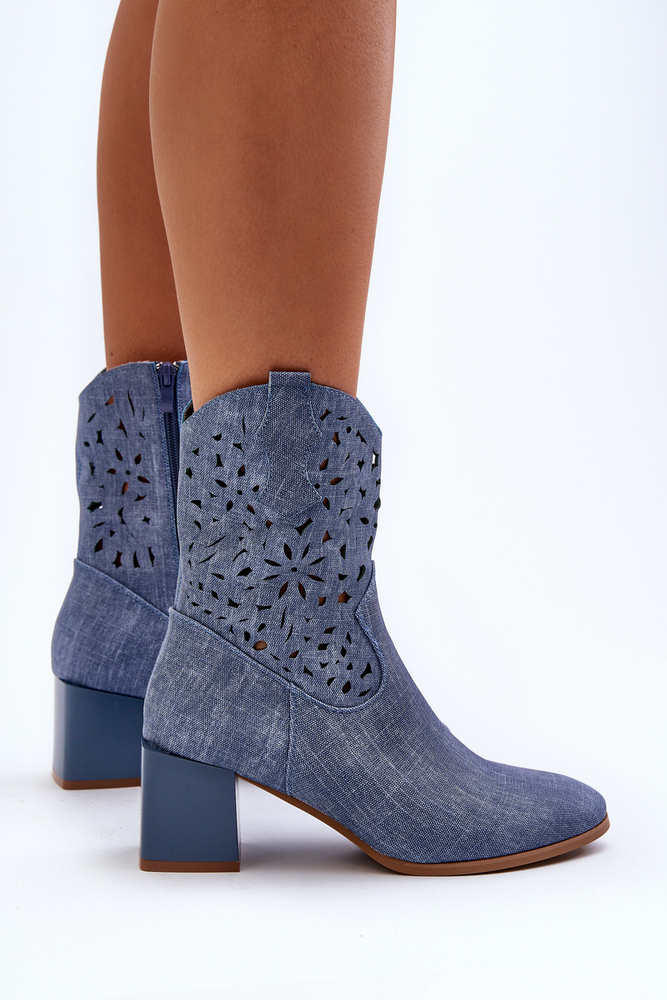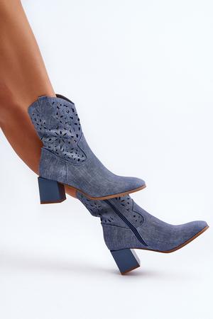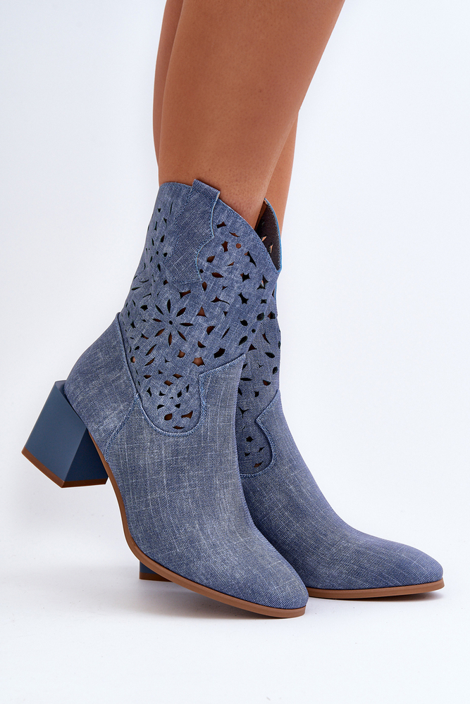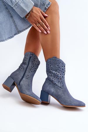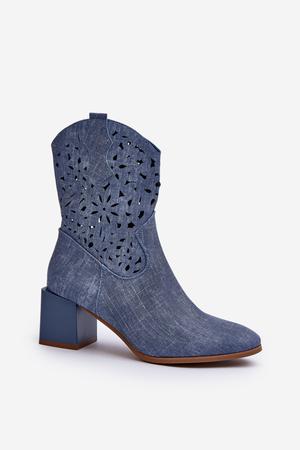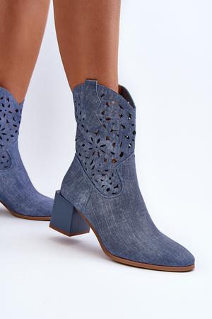 Kesi Džínové kotníkové boty s prolamovaným svrškem na kvádru, modré Irvelame 36, Odstíny, tmavě