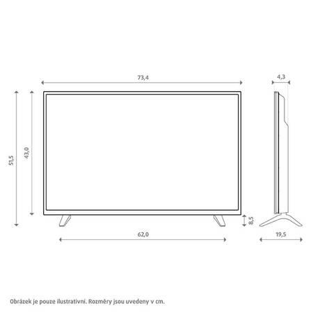 Nožky televizoru jsou pevně spojeny kovovou deskou a dodávané samolepky umožní bezpečné přichycení k povrchu, aby se předešlo nechtěnému převržení a případným úrazům.