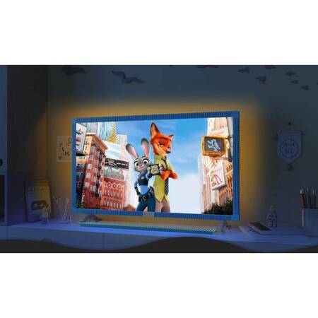 Zadní světlo vytváří měkkou a uklidňující atmosféru, která dětem pomůže snadněji usnout. Jas osvětlení lze nastavit pomocí dálkového ovladače nebo tlačítka přímo na televizi, a světlo může fungovat i samostatně, když je televize vypnutá.