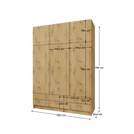 Kondela GERI NEW šatní skříň třídveřová dub artisan