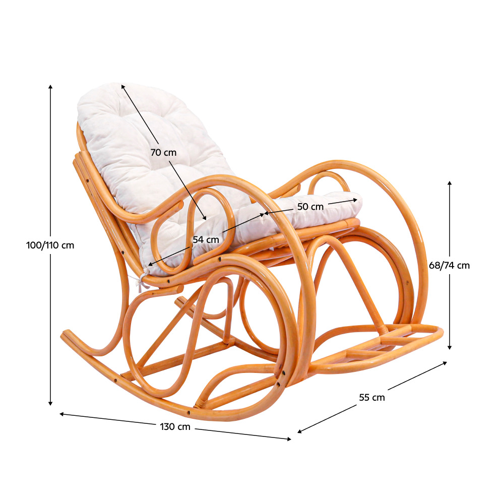 Materiál: přírodní ratan/látka Oděruodolnost textilie podle testu Martindale: 50 000 oděrů Barva: medová/béžová Rozměry (ŠxHxV): 55x130x100/110 cm Výška sedu: 68 cm Hloubka sedu: 54 cm Šířka sedu: 50 cm Šířka zad: 48 cm Výška zad: 70 cm Dodáváno s polštářem Rozměr polštáře: 50x141x10 cm Výplň ...