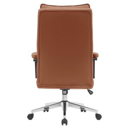 Materiál: ekokůže/kov Oděruodolnost textilie podle testu Martindale: 100 000 oděrů Barva: hnědá camel/chrom Rozměry (ŠxHxV): 65x71x106-112 cm Nastavitelná výška sedu Výška sedu: 45-51 cm Šířka sedu: 52 cm Hloubka sedu: 44 cm Výška zádové opěrky: 72 cm Šířka zádové opěrky: 51,5 cm Nosnost: 100 kg Otočná Univerzální kolečka Kolečka vhodná pro měkké i tvrdé podlahy Čalouněné opěrky na ruce Mechanismus houpání Kancelářské Dodáváno v demontu