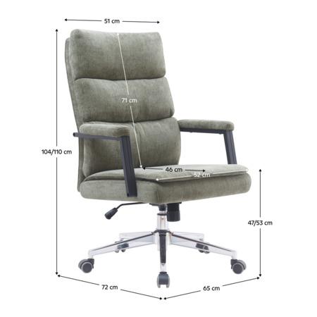 Materiál: látka/kov Oděruodolnost textilie podle testu Martindale: 80 000 oděrů Barva: zelená/chrom Rozměry (ŠxHxV): 65x72x104/110 cm Výška sedu: 47/53 cm Hloubka sedu: 46 cm Šířka sedu: 52 cm Šířka zádové opěrky: 51 cm Výška zádové opěrky: 71 cm Nosnost: 100 kg Hmotnost: 15,7 kg S čaluněnými ...