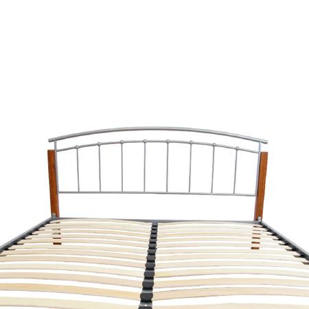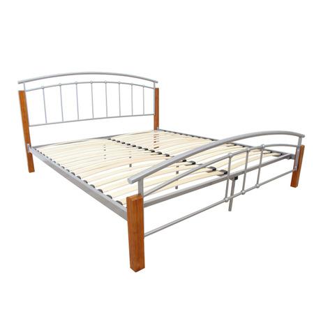 Kovová postel s lamelovým roštem, MIRELA Vnější rozměry (ŠxHxV): 143,5x212x108 cm, Plocha na spaní: 140x200 cm, Materiál: kov / dřevo, Barva: stříbrná / přírodní olše, Možnost dokoupit matraci s rozměrem 140x200 cm. Nosnost: 100 kg Dodávané v demontu. Parametry produktu: kategorie Kondela; Ložnice > ...