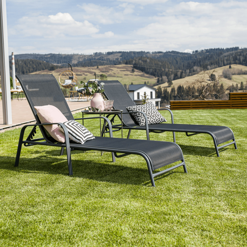 Kondela Polohovací zahradní lehátko, černá/šedá, ATREO