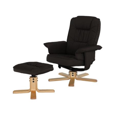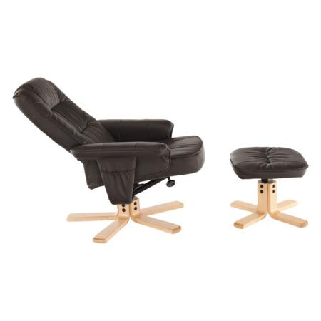 Polohovací, otáčivé relaxační křeslo s podnožkou LERATO v cappucino barvě s natural dřevěnou podnožkou