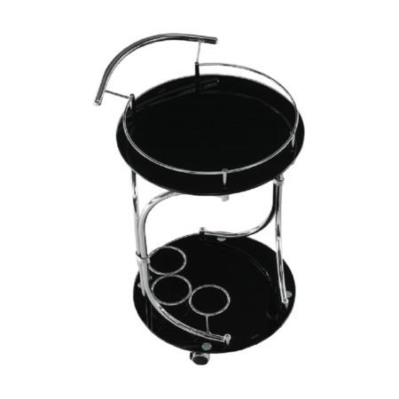 Servírovací stolek Vesna jako vhodný doplněk do každé domácnosti, která má ráda návštěvy. Doplní Vaši obývací pokoj luxusním stylem. Horní a dolní plát je z černého skla kombinovaný s kovem - chromem. Má čtyři pochromované kolečka av dolní části stojan na láhve, mámoderný designový vzhled. Rozměry ...
