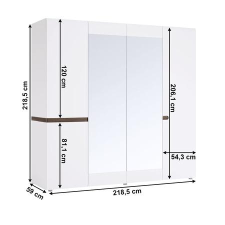 Čtyřdveřová skříň LYNATET 23 Provedení: bílá extra vysoký lesk HG / dub sonoma truflový Materiál: DTD laminovaná Moderní zaoblené hrany. Rozměry (ŠxHxV): 218,5x59x209 cm. Tloušťka materiálu: 16 mm Korpus je v matném provedení Dvířka jsou v provedení extra vysoký lesk Dodávané v demontu. Parametry ...