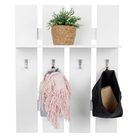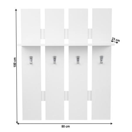Věšáková stěna TOPTY Typ 17 Materiál: DTD laminovaná Provedení: bílá Rozměry (ŠxHxV): 80x23x100 cm Tloušťka materiálu korpus: 16 mm 4 věšáky Police Úložný prostor Moderní sektorový systém vhodný na zařízení kanceláří, pracoven, obývacích prostorů či síní Parametry produktu: kategorie Kondela; ...