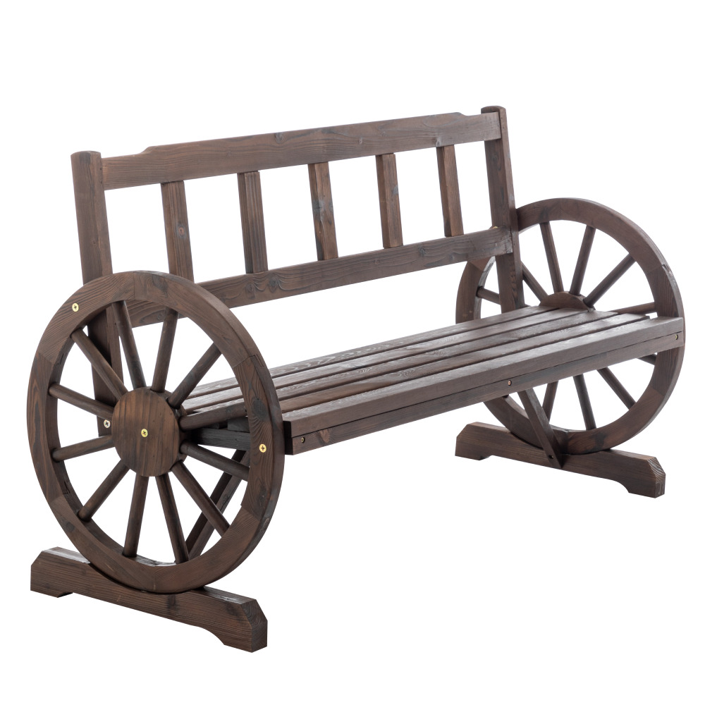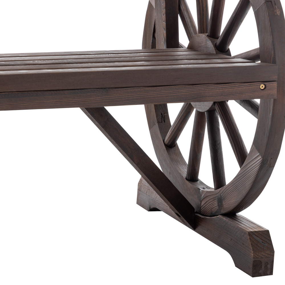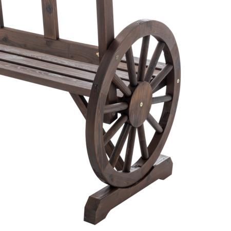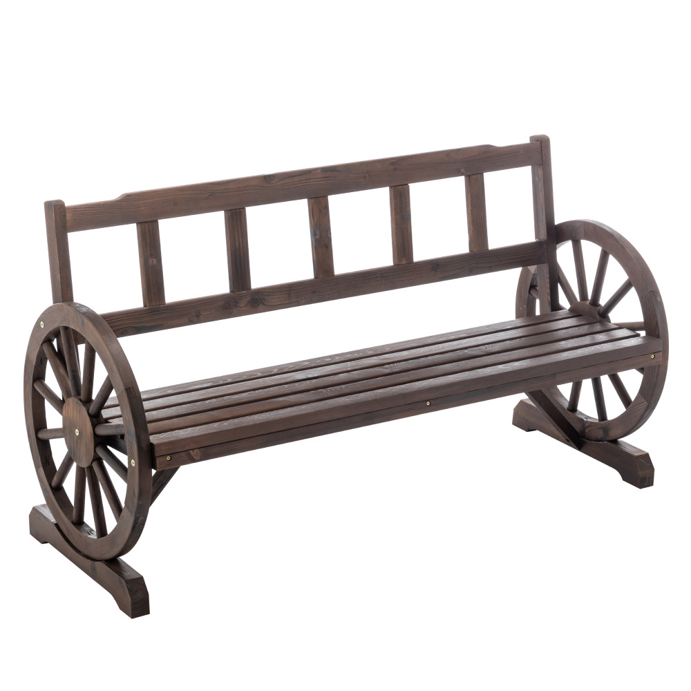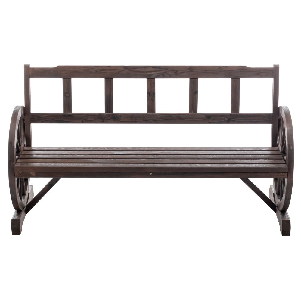 Materiál: borové dřevo Barva: hnědá Rozměry (ŠxHxV): 142x56x76 cm Šířka sezení: 134 cm Výška sezení: 39 cm Hloubka sezení: 35 cm Výška opěrky zad: 39 cm Průměr kola: 54,5 cm Tloušťka materiálu: 1,8-4,5 cm Nosnost: 260 kg Opěrky na ruku ve tvaru kola Na zahradu nebo terasu Venkovský styl Odolný vůči povětrnostním podmínkám Doporučujeme výrobek chránit před nepříznivými povětrnostními podmínkami, aby se prodloužila životnost výrobku Dodávána v demontu