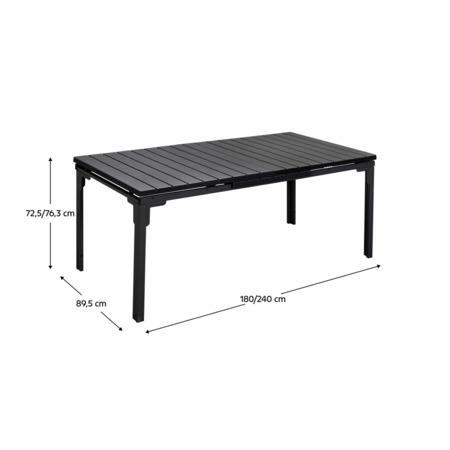 Materiál: ocel/plast Barva: černá Rozměry (ŠxHxV): 180-240x89,5x72,5-76,3 cm Nosnost: 50 kg Jednoduchý Praktický Rozkládací Zahradní Vhodný pro 6 a více osob Dodáváno v demontu Parametry produktu: kategorie Kondela; Zahrada > Zahradní nábytek > Zahradní stoly; váha; 28.20; barva; Černá; hloubka; ...