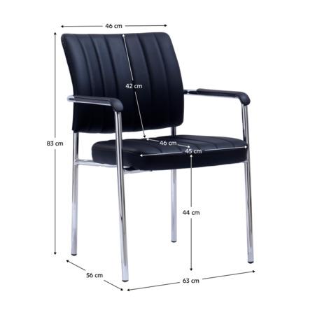 Materiál: ekokůže/kov Oděruodolnost textilie podle testu Martindale: 100 000 oděrů Barva: černá/chrom Rozměry (ŠxHxV): 63x56x83 cm Výška sedu: 44 cm Hloubka sedu: 46 cm Šířka sedu: 45 cm Šířka zádové opěrky: 46 cm Výška zádové opěrky: 42 cm Nosnost: 100 kg Chromová podstava Zasedací S opěrkami na ...