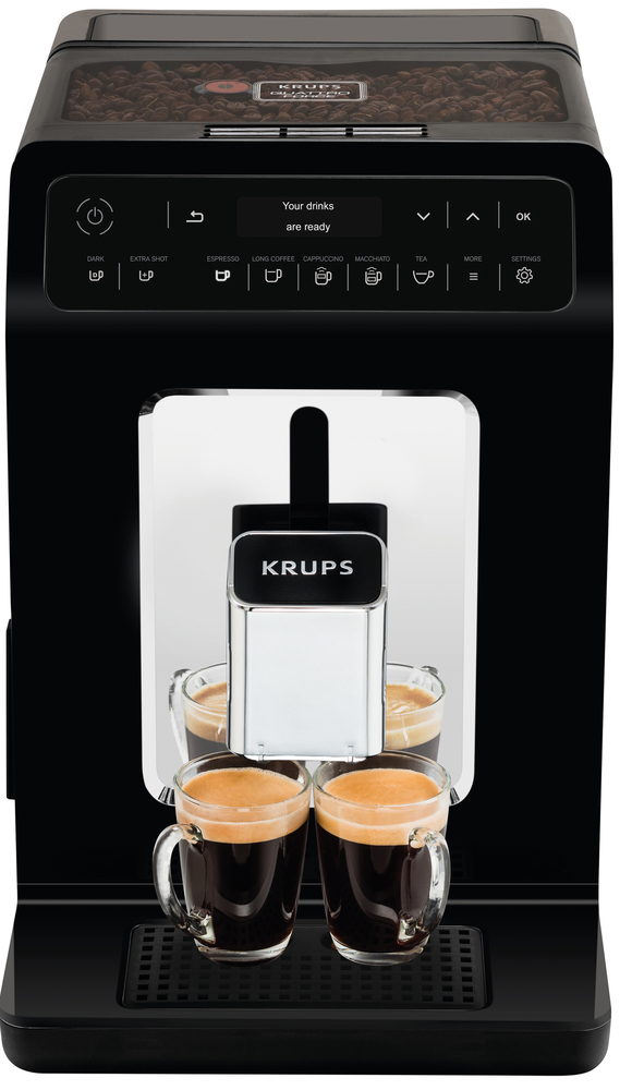 Plnoautomatický kávovar Krups Evidence je vyroben s maximální péčí a precizností až do posledního detailu. Díky 15 přednastavitelným volbám vám automatický kávovar umožní připravit si všechny vaše oblíbené druhy kávy - od aromatického espressa, až po dokonale vyvážené cappuccino či caffe latte. Pomocí funkce One-Touch-Cappuccino budou vaše mléčné nápoje připraveny pouhým jedním dotykem displeje. Každý druh kávy také můžete obohatit přidáním extra porce espressa, což nápoji dodá intenzivnější chuť a energii, vyzkoušet můžete také funkci Dark. Kávovar Evidence je vybaven technologií Krups Quattro Force, která vás okouzlí kvalitním rychlým mletím, precizním tempováním, okamžitým ohřevem již od prvního šálku a automatickým cyklem proplachu parní trysky pro zajištění dlouhodobé výkonnosti.