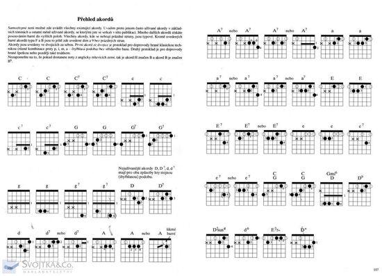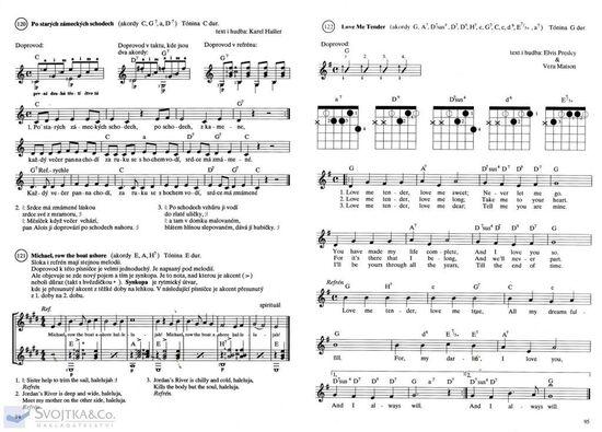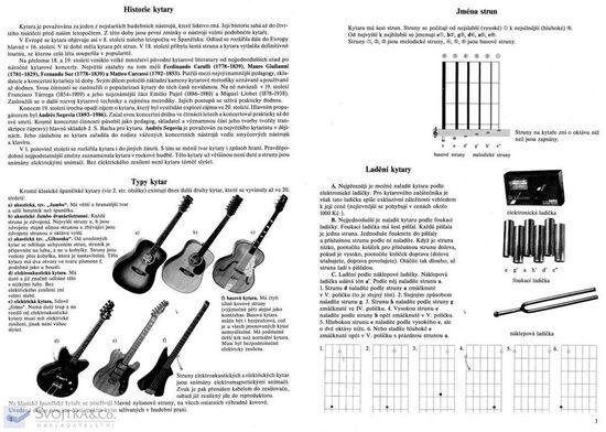 Popisuje základy hry na kytaru až k úplnému zvládnutí nástroje. Více než 100 textu nejznámnejších. Základy hudební teorie. Vhodná pro samouky i žáky hudebních škol.