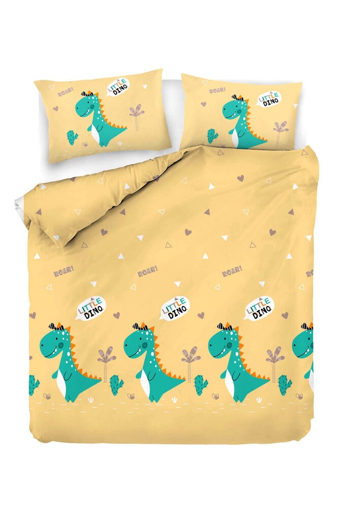 L'essentiel Maison Ranforce Double Duvet Cover Set Little Dino - Yellow