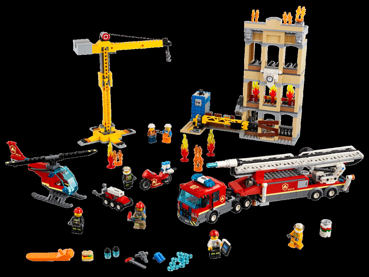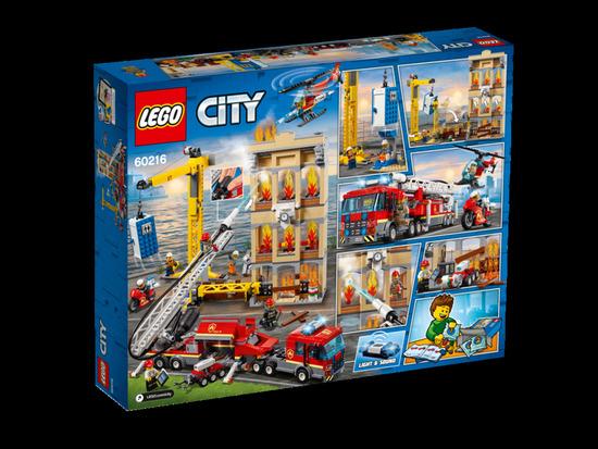 Ochraň občany LEGO® City s akční sadou 60216 Hasiči v centru města, která obsahuje velké požární auto s novou světelnou a zvukovou kostkou, která spatří světlo světa v lednu 2019, vysouvacím otočným žebříkem s požární hadicí a novým vodním dělem s funkcí „stříkání vody“, které vyjde v lednu 2019. Tato vzrušující sada obsahuje také třípatrovou budovu se střechou, staveniště s plotem, padající lampu a mobilní záchod s odnímatelným horním a předním dílem, a navíc samostatně stojící jeřáb s rotujícím ramenem a funkčním navijákem. Dále zde najdeš také hasičskou helikoptéru s otevíracím kokpitem a hasičského robota R.O.S.-T3, obojí s novým trojitým vystřelovačem, který vyjde v lednu 2019, a motorku s prostorem pro výstražná světla, a navíc také 7 minifigurek.