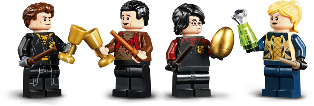Součástí jsou 4 nové LEGO® Harry Potter™ minifigurky, které spatří světlo kouzelnického světa v červnu 2019: Harry Potter, Fleur Delacourová, Cedric Diggory a Viktor Krum, každý s vlastní hůlku.